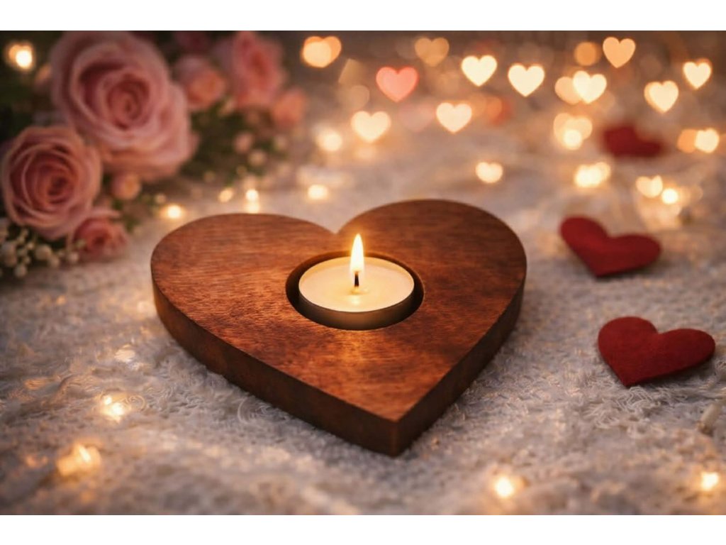 Drevený svietnik Srdce – Symbol lásky a tepla domova