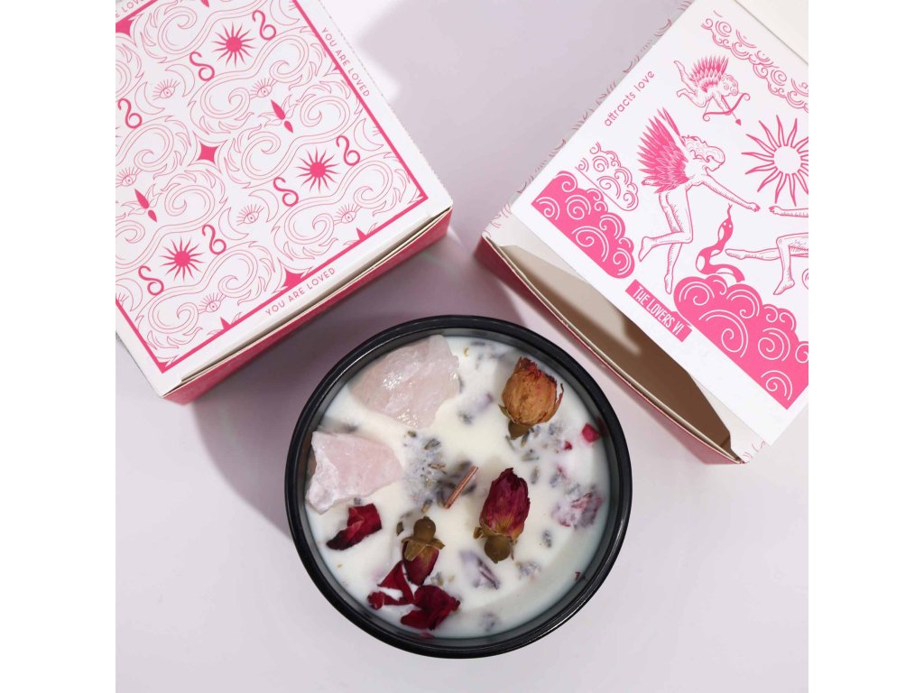Ponorte sa do omamnej vône rozkvitnutých ružových lúk a vytvorte si atmosféru romantiky a jemnosti. Srdcom tejto magickej sviečky je ruženín – kameň lásky, o ktorom sa verí, že otvára srdcovú čakru a priťahuje do života lásku. Nechajte jeho upokojujúcu energiu naplniť váš priestor teplom, nežnosťou a láskyplnou atmosférou, zatiaľ čo plamienok jemne tancuje. Ideálna na romantické večery alebo chvíle, keď túžite po harmónii a pokoji.