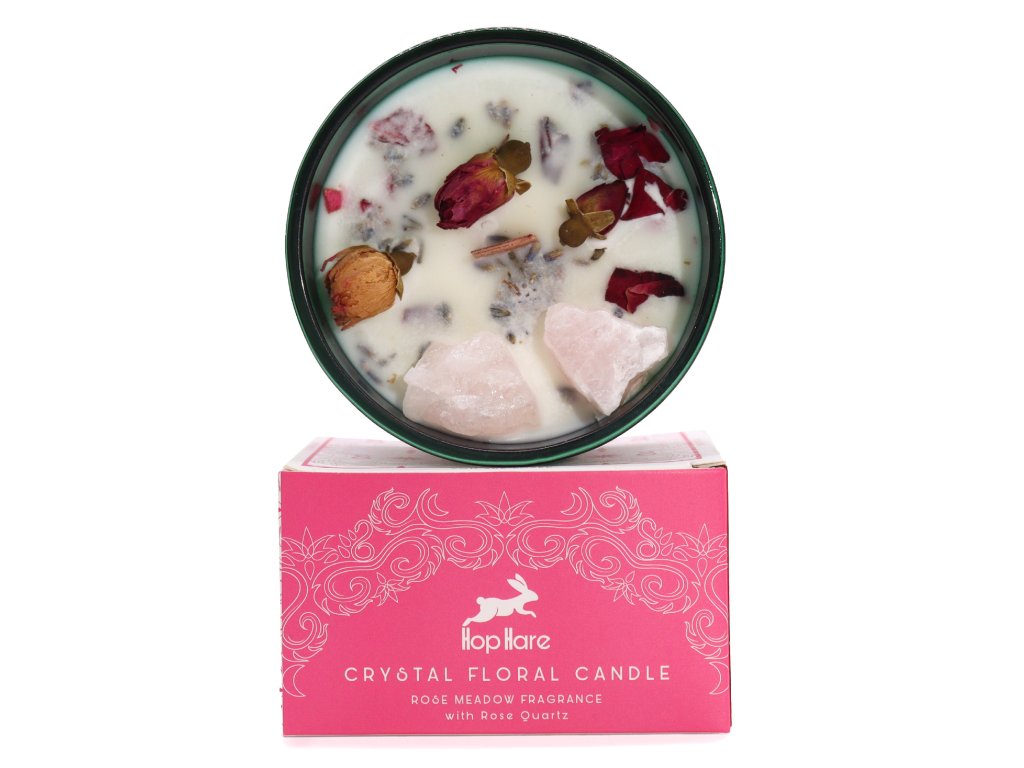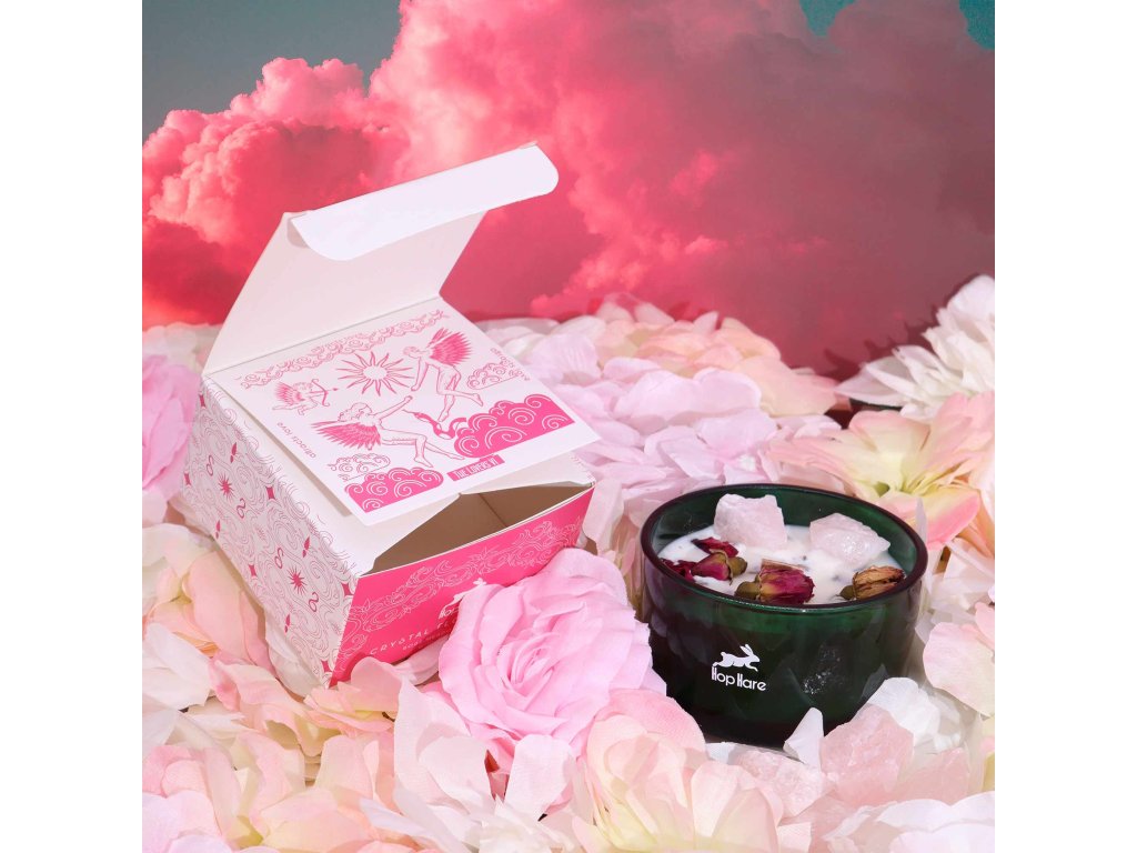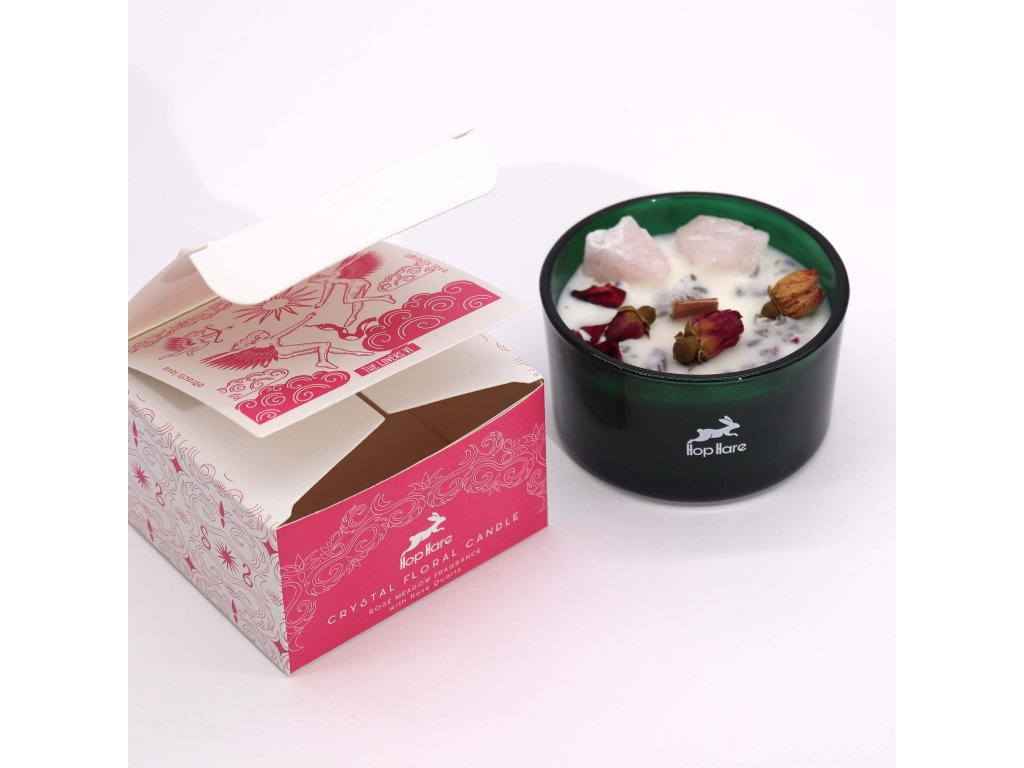 Každá krištáľová sviečka Hop Hare je jedinečné majstrovské dielo – ukrytá v elegantnej tmavozelenej sklenenej nádobe s rustikálnym dreveným knôtom. Vo vnútri objavíte hlavný drahokam, obklopený drobnými kúskami ďalších kryštálov, ktoré spolu vytvárajú očarujúcu prírodnú kompozíciu.