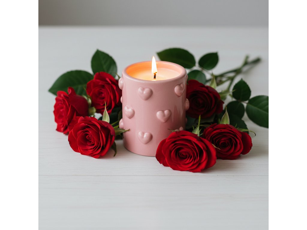 Táto výnimočná ručne vyrábaná sójová sviečka v keramickom obale je symbolom jemnosti, tepla a lásky. Elegantná keramika zdobená srdiečkami vytvára romantickú atmosféru a robí zo sviečky nielen zdroj svetla, ale aj štýlový dekoratívny prvok do interiéru.
