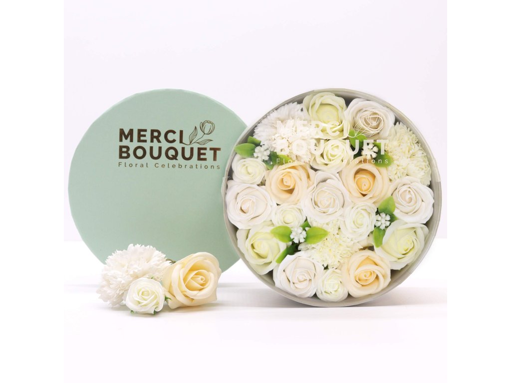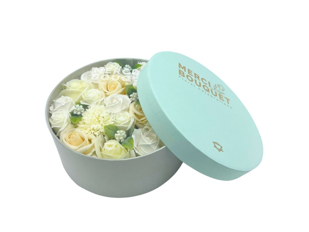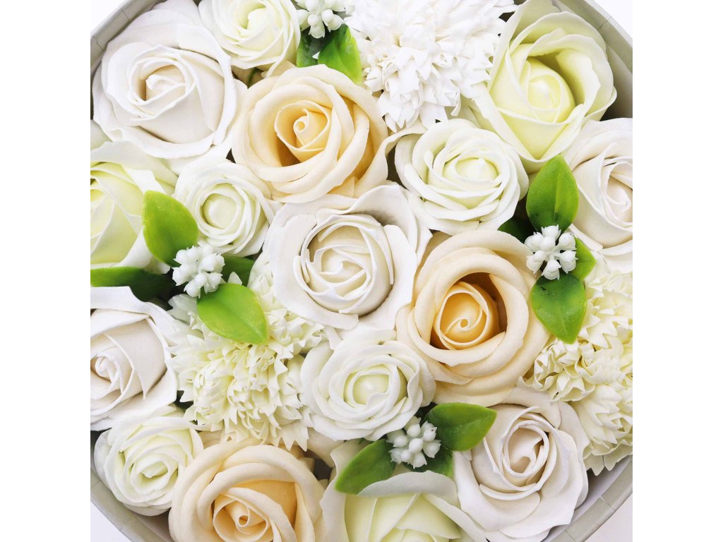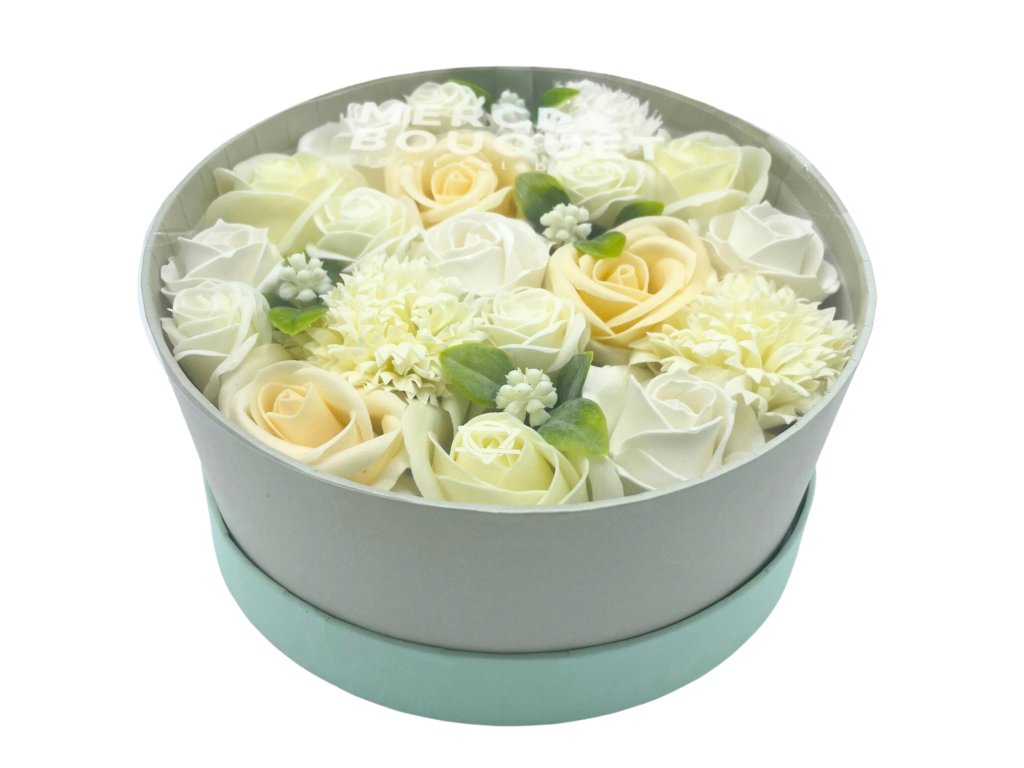Mydlové kvety Okrúhly Box - Biely a Ivory