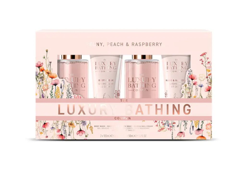 Luxusná sada starostlivosti o telo a ruky, ktorá rozmazná vašu pokožku a zahalí ju do sviežej, kvetinovo-ovocnej vône pivonky, broskyne a maliny. Elegantný dizajn a harmonická vôňa robia z tejto sady nielen účinnú kozmetiku, ale aj krásny doplnok do kúpeľne či ideálny darček pre každú príležitosť.